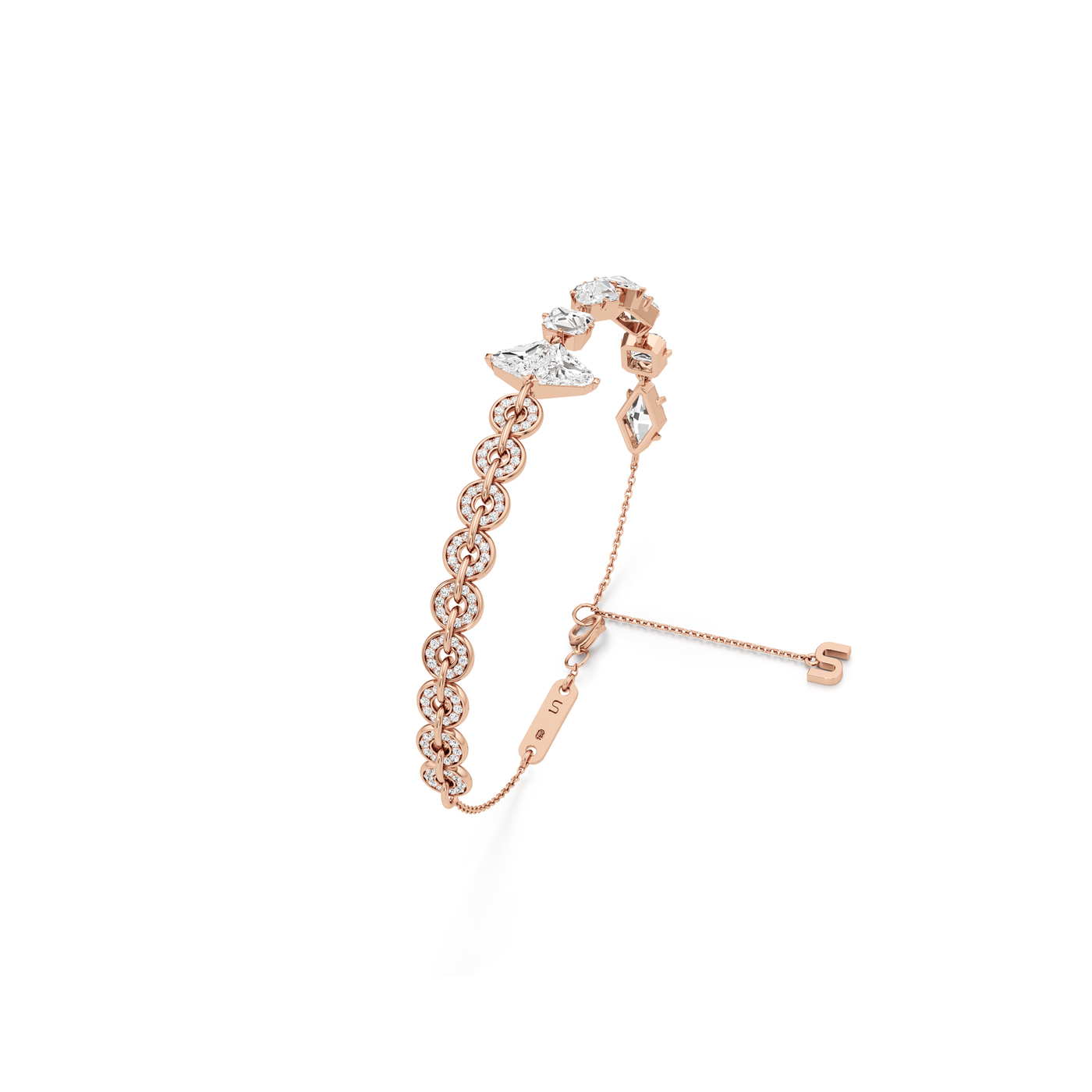 The Armor Long Diamond Bracelet showcases the Unsaid signature Armor Square and Armor Long diamond cuts, handcrafted by our master artisans to dazzle from 32 and 46 brilliant facets, respectively, in a rigid, 18K gold setting. The diamond-pavé lined chain and slender fastening move flexibly for a delicate finish. This semi-supple bracelet symbolizes a delicate balance between strength and grace. All Unsaid jewels are handcrafted from lab-grown diamonds and 18K recycled gold. Powered by renewable energy, our methods and materials are certified carbon neutral.