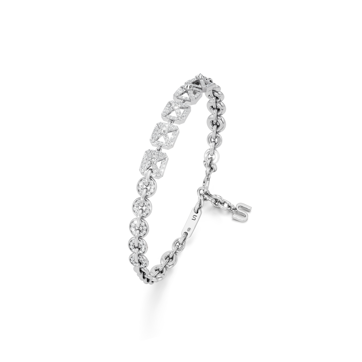 The Armor Square Diamond Bracelet features the Unsaid signature Armor Kite diamond cut, handcrafted by our master artisans to showcase 28 light-catching facets. Set on a luminous 18K gold chain interlocking square and round motifs lined in diamond pavé, this bracelet is an ode to the strength and beauty of courage and resilience. All Unsaid jewels are handcrafted from lab-grown diamonds and 18K recycled gold. Powered by renewable energy, our methods and materials are certified carbon neutral.