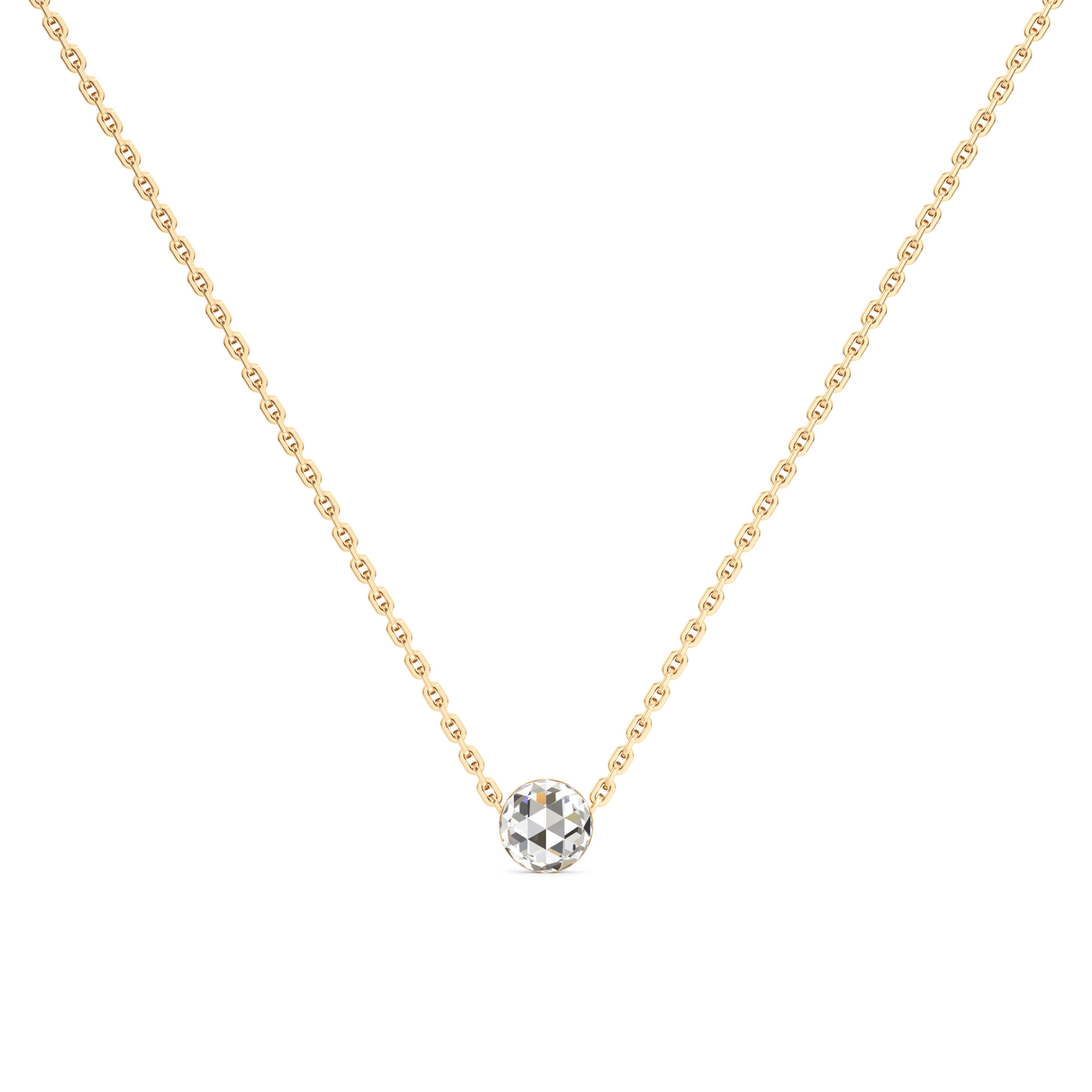 The Bubble Diamond Pendant Necklace showcases the Unsaid signature Bubble diamond cut, a patented design handcrafted by our master artisans with a dazzling total of 85 individual facets. Set within a mirror-polished gold semi sphere, this diamond pendant is fixed in place on the slender chain for a stunning drape that always seeks the light. All Unsaid jewels are handcrafted from lab-grown diamonds and 18K recycled gold. Powered by renewable energy, our methods and materials are certified carbon neutral.