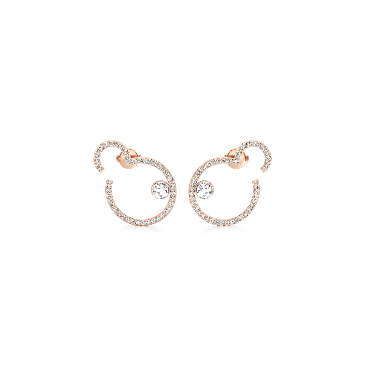 Handcrafted with renewable energy in 18K recycled gold with lab-grown diamonds, these open, suspended earrings feature a floating bubble-cut diamond, a signature and patent cut with 85 facets by Unsaid Paris.