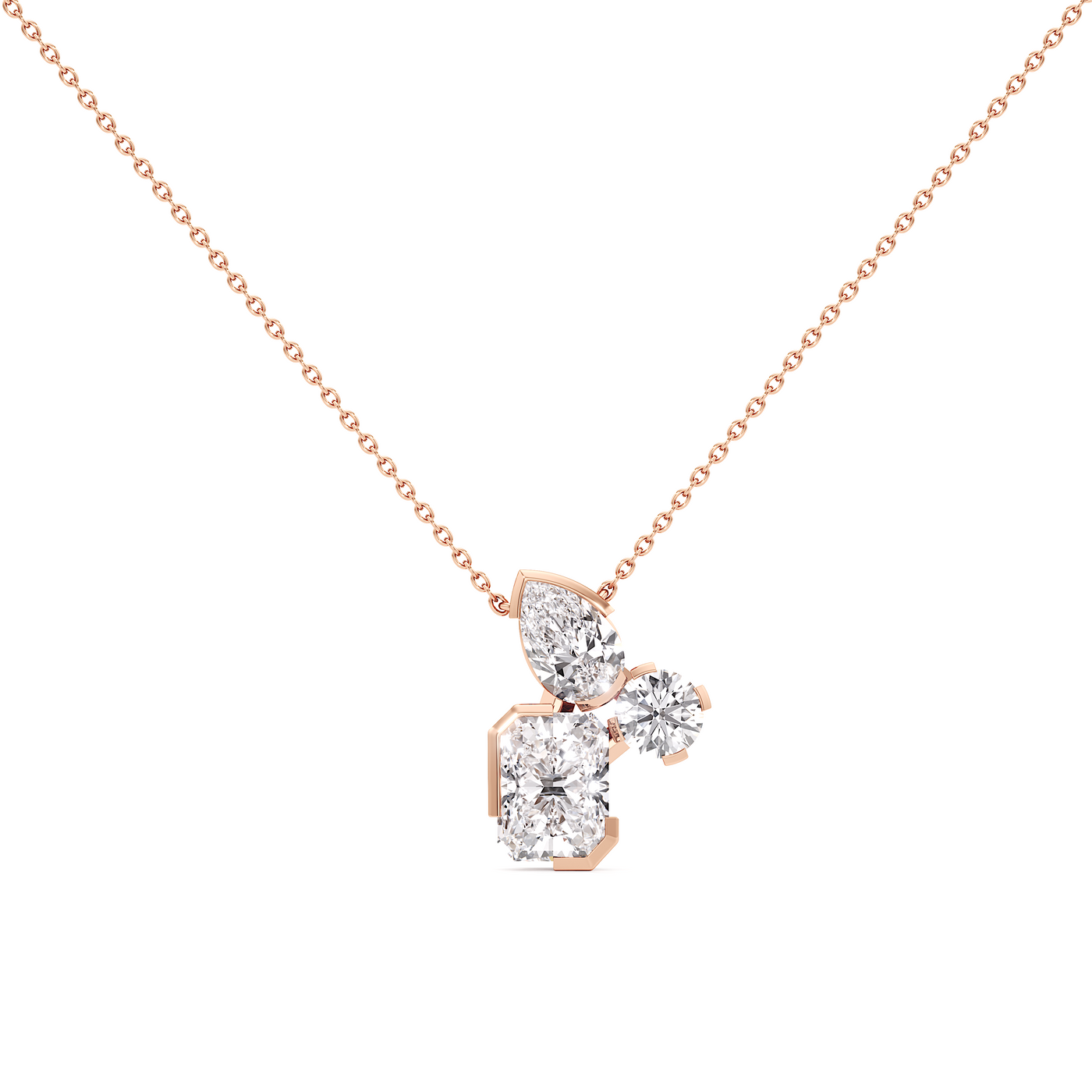 The Meta Diamond Cluster Pendant Necklace presents a sublime trio of round-, pear-, and radiant-cut diamonds, handcrafted by our master artisans in compelling half-bezel settings that enhance their sparkling shapes. Fixed in place on the slender gold chain, this small diamond pendant represents metamorphosis, embodying the beauty of embracing change. All Unsaid jewels are handcrafted from lab-grown diamonds and 18K recycled gold. Powered by renewable energy, our methods and materials are certified carbon neutral.