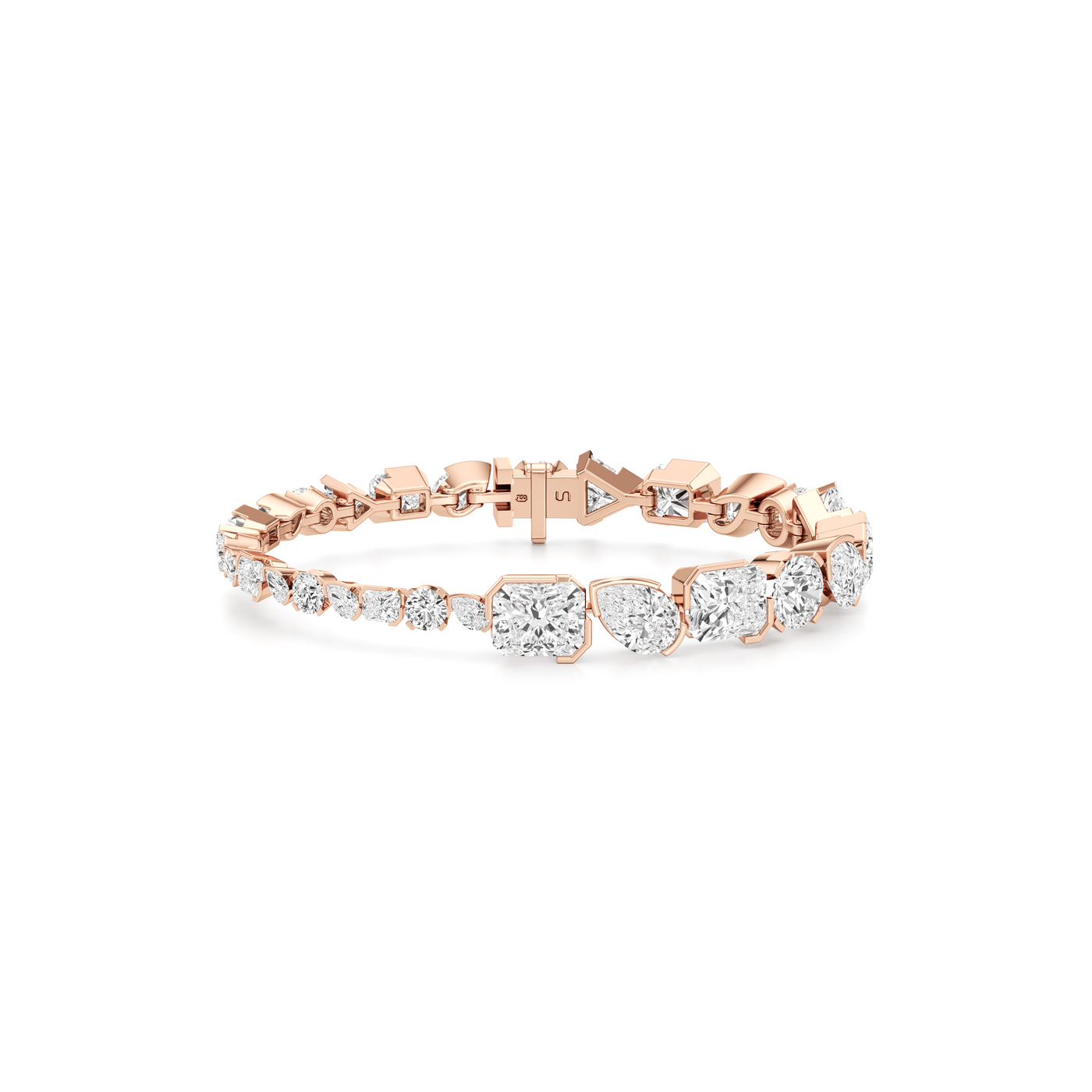 The Meta Diamond Eternity Bracelet Statement combines round-, pear-, radiant-, and trillion-cut diamonds in elegant half-bezel settings to enhance their sparkling shapes. Handcrafted by our master artisans, this statement diamond eternity bracelet represents the beauty that emerges from metamorphosis. All Unsaid jewels are handcrafted from lab-grown diamonds and 18K recycled gold. Powered by renewable energy, our methods and materials are certified carbon neutral.