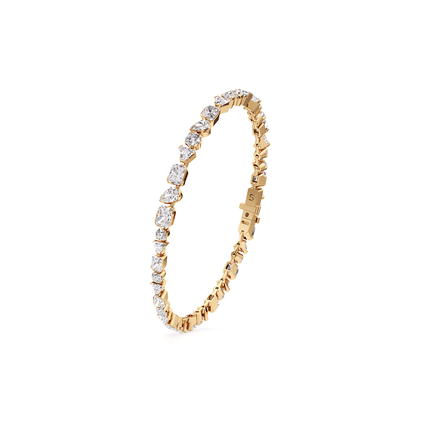 The Meta Diamond Eternity Bracelet combines round-, pear-, radiant-, and trillion-cut diamonds in elegant half-bezel settings to enhance their sparkling shapes. Handcrafted by our master artisans, this diamond eternity bracelet represents the beauty that emerges from metamorphosis. All Unsaid jewels are handcrafted from lab-grown diamonds and 18K recycled gold. Powered by renewable energy, our methods and materials are certified carbon neutral.
