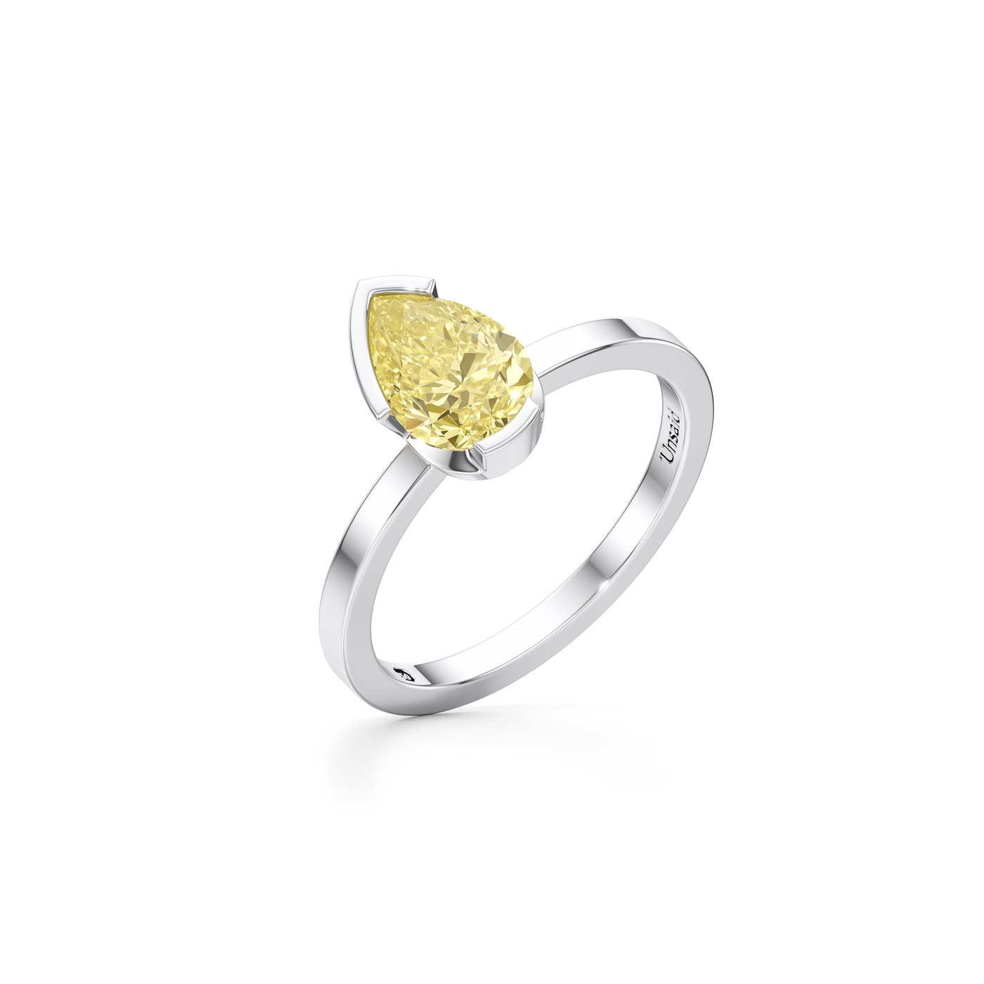 The Meta Yellow Diamond Pear Solitaire Ring reimagines the classic pear-cut diamond to express evolution in form. Crafted in a half-bezel setting that reflects light with sculptural precision, this ring captures a chapter in a personal story of becoming. All Unsaid jewels are handcrafted from lab-grown diamonds and 18K recycled gold. Powered by renewable energy, our methods and materials are certified carbon neutral.