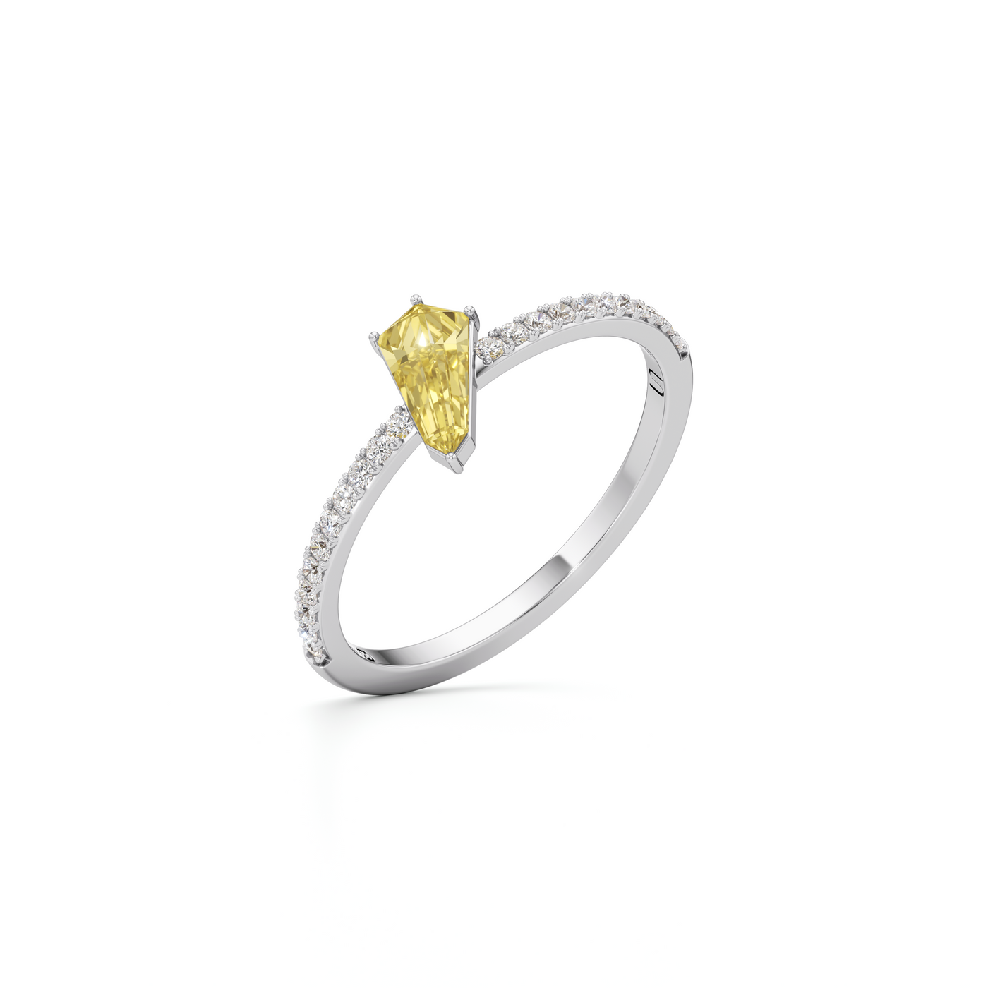 The Phoenix Yellow Diamond Pavé Ring showcases the Unsaid signature Phoenix yellow diamond, a patented cut handcrafted by our master artisans to illuminate from 33 unprecedented, elongated facets. Mounted on a slender gold band lined in a sparkling diamond pavé, this diamond ring is a symbol of the power of renewal. All Unsaid jewels are handcrafted from lab-grown diamonds and 18K recycled gold. Powered by renewable energy, our methods and materials are certified carbon neutral.