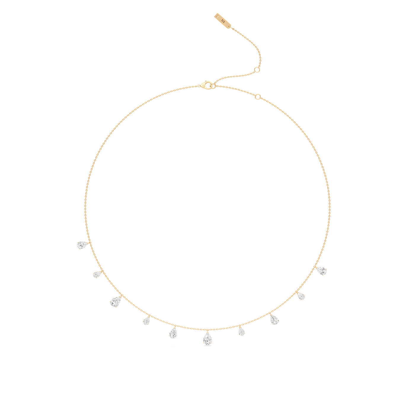 The Tear Diamond Charm Necklace presents a sparkling array of ten signature Tear-cut diamonds in a symmetrical drape from a slender gold chain. Handcrafted by our master artisans to reveal 38 distinct facets each, the Tear diamonds represent the authenticity that emerges when one's deepest emotions are nurtured. All Unsaid jewels are handcrafted from lab-grown diamonds and 18K recycled gold. Powered by renewable energy, our methods and materials are certified carbon neutral.