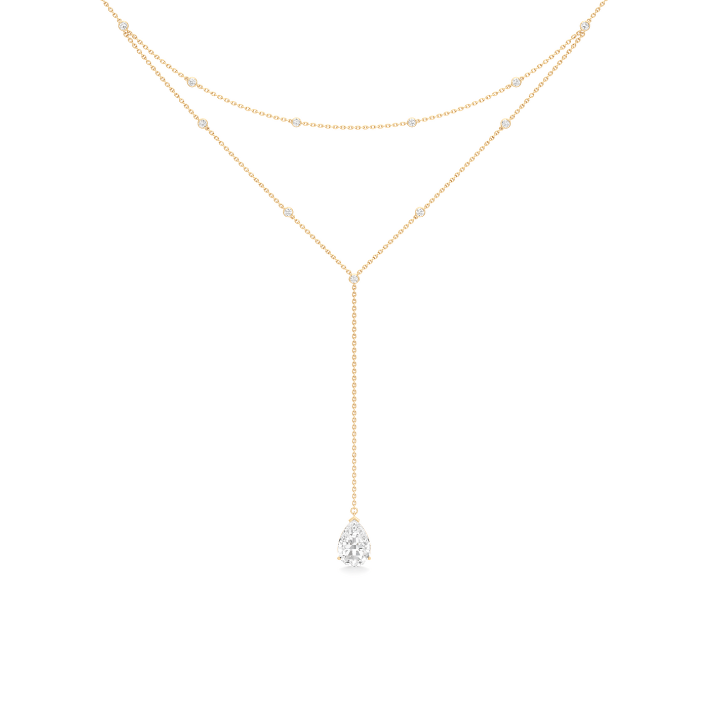 The Tear Diamond Layered 'Y' Necklace is crafted in an elegant double-strand gold chain embellished with tiny round-cut placed diamonds and extending in a Y shape to a signature Tear-cut diamond. Handcrafted by our master artisans to showcase 38 individual facets, the Tear diamond is a symbol of authentic connection to one's emotions and true self. All Unsaid jewels are handcrafted from lab-grown diamonds and 18K recycled gold. Powered by renewable energy, our methods and materials are certified carbon neutral.