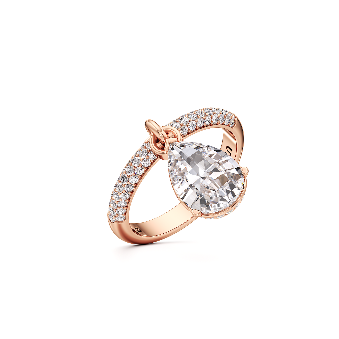 The Tear Diamond Sway Ring celebrates the purest form of joy through the signature Tear-cut diamond, masterfully handcrafted with 38 stunning facets. Set in 18K recycled gold, the band shimmers with pavé-set diamonds, while a Tear-cut solitaire is suspended below in a delicate prong setting. Designed to move with a gentle sway, this jewel captures the natural weightlessness and curvature of a falling drop. All Unsaid jewels are handcrafted from lab-grown diamonds and 18K recycled gold. Powered by renewable energy, our methods and materials are certified carbon neutral