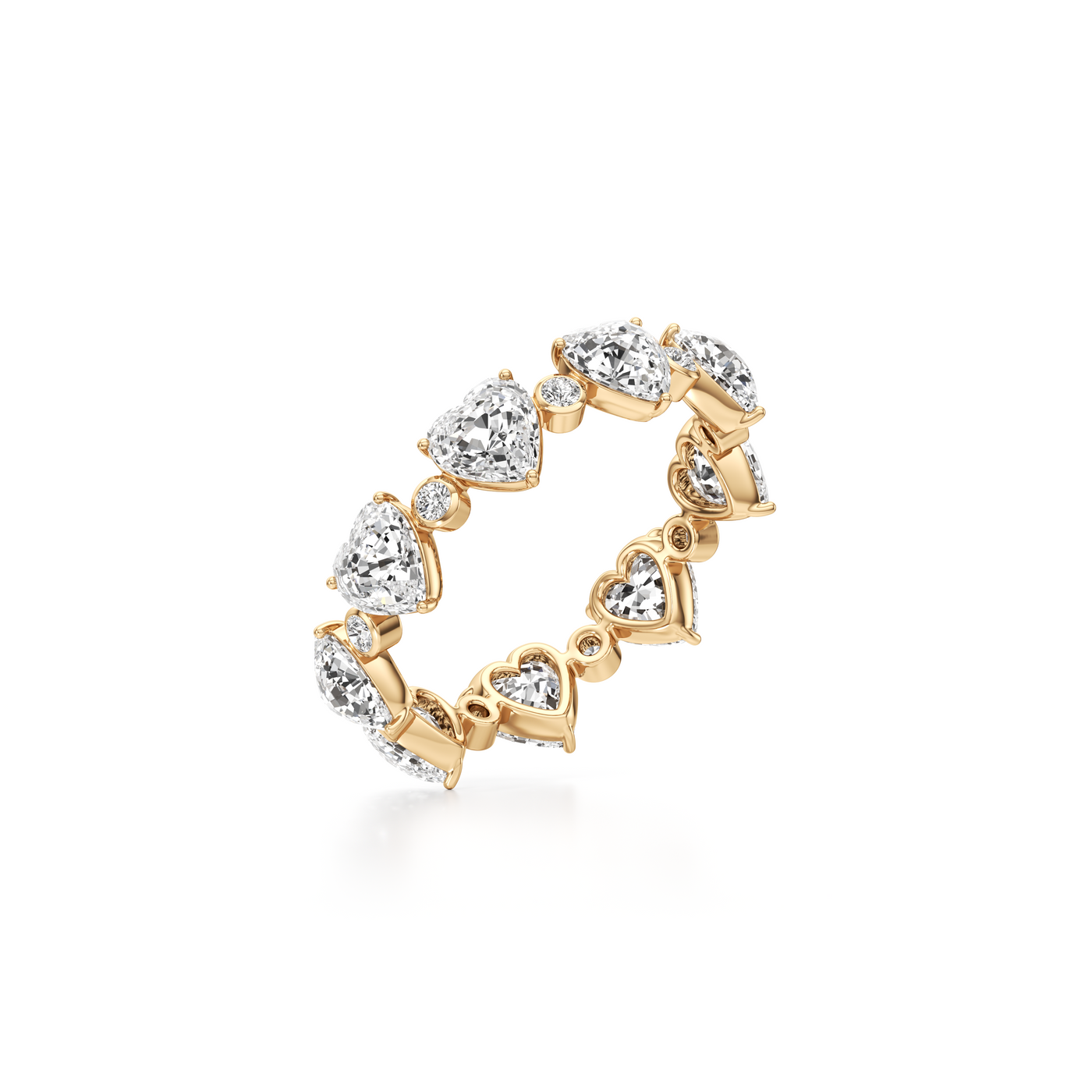 Statement eternity ring in 18K recycled gold handcrafted with heart-shaped and round lab-grown diamonds.