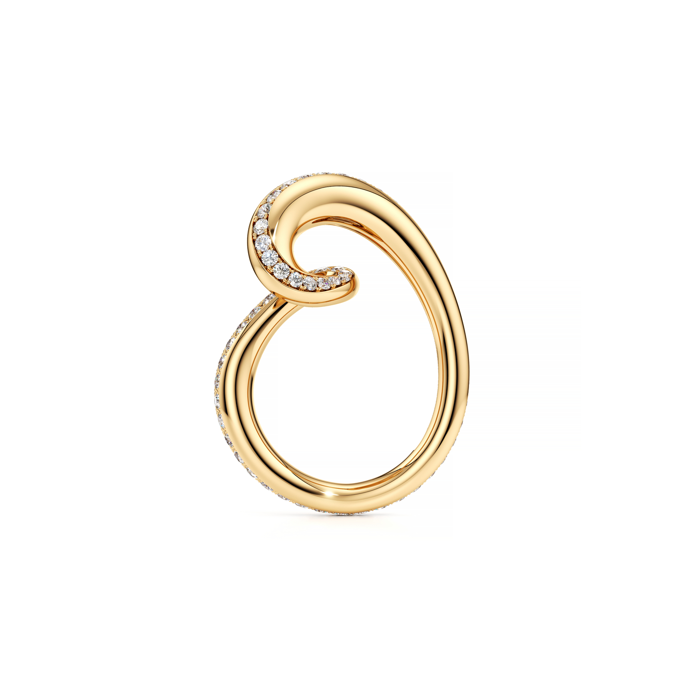 Sculptural ring in 18K recycled gold, handcrafted with pavé-set lab-grown diamonds.