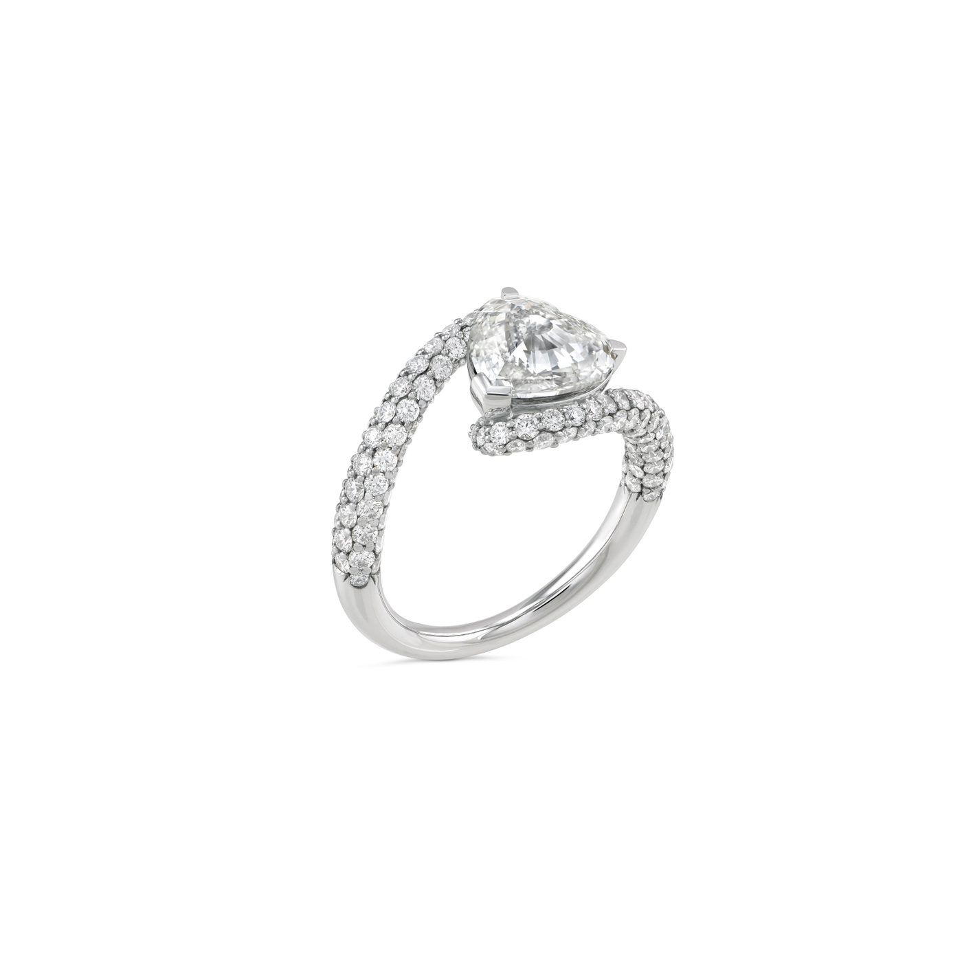 Sculptural solitaire ring in 18K recycled gold, showcasing the Whirlwind Heart Cut and pavé lab-grown diamonds.