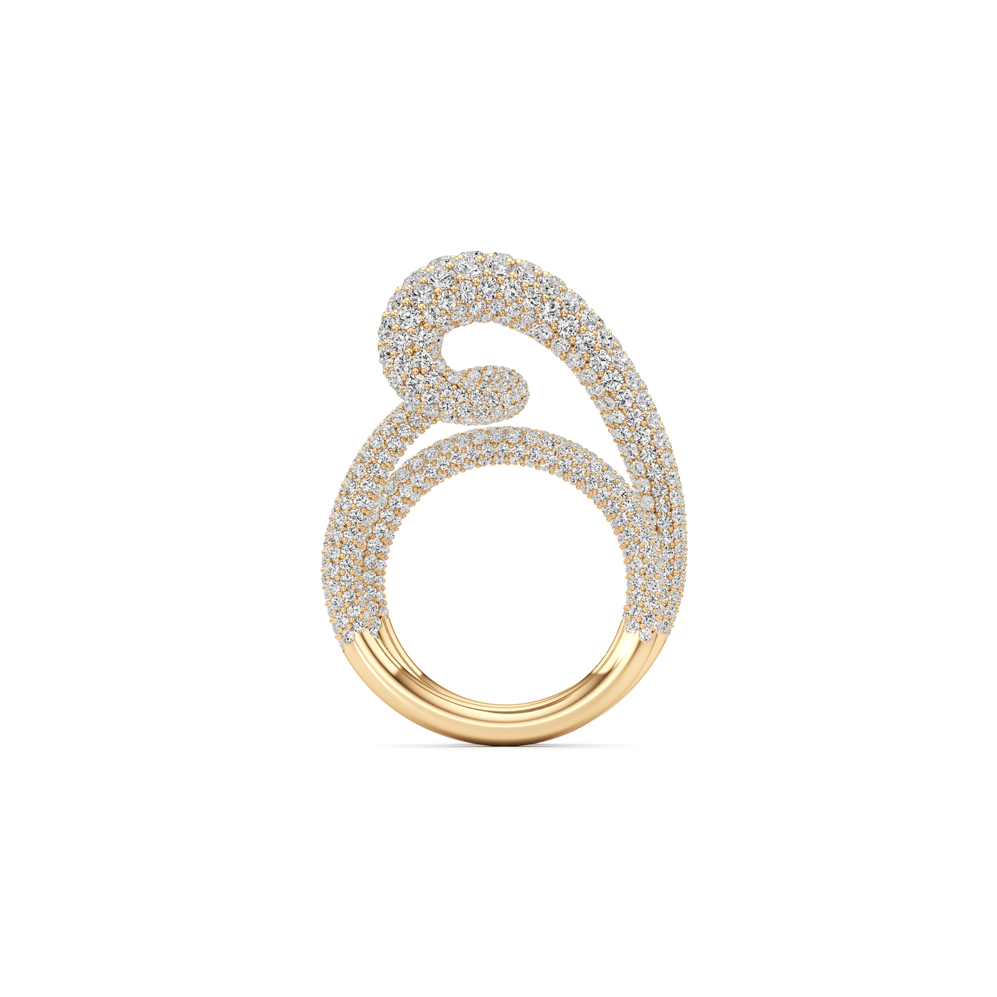 Sculptural Whirlwind Twist Diamond Pavé Ring handcrafted in polished 18K recycled gold with over 700 pavé lab-grown diamonds.